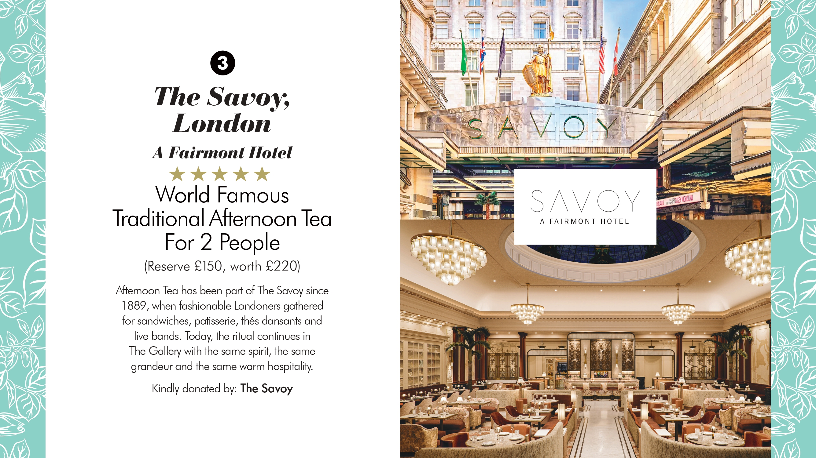 LOT 3: The Savoy London - World Famous Traditional Afternoon Tea for 2 people
