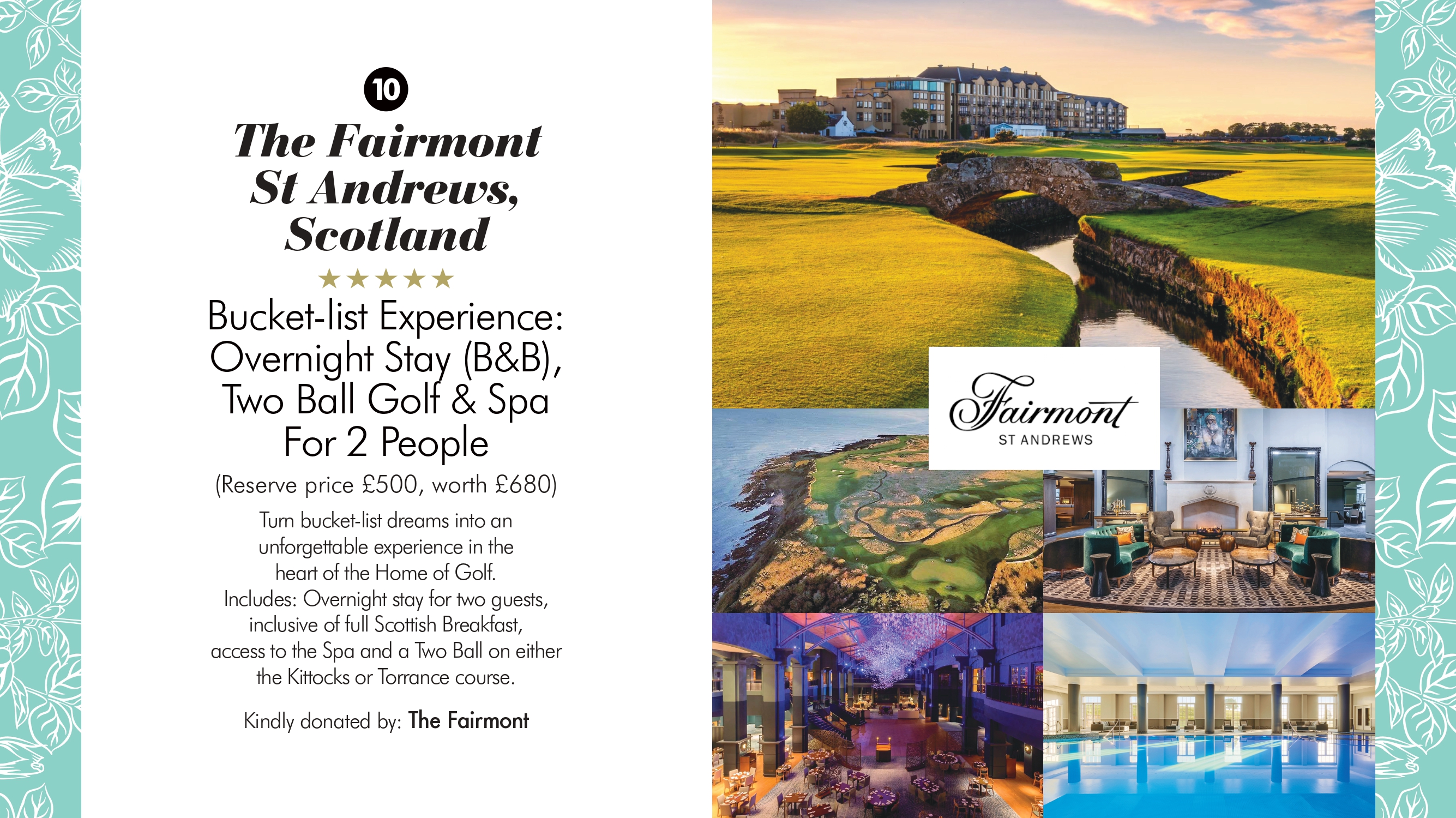 LOT 10 - The Fairmont St Andrews ‘Bucket-list’ Overnight Stay, Two Ball Golf and Spa (JUST ARRIVED!)